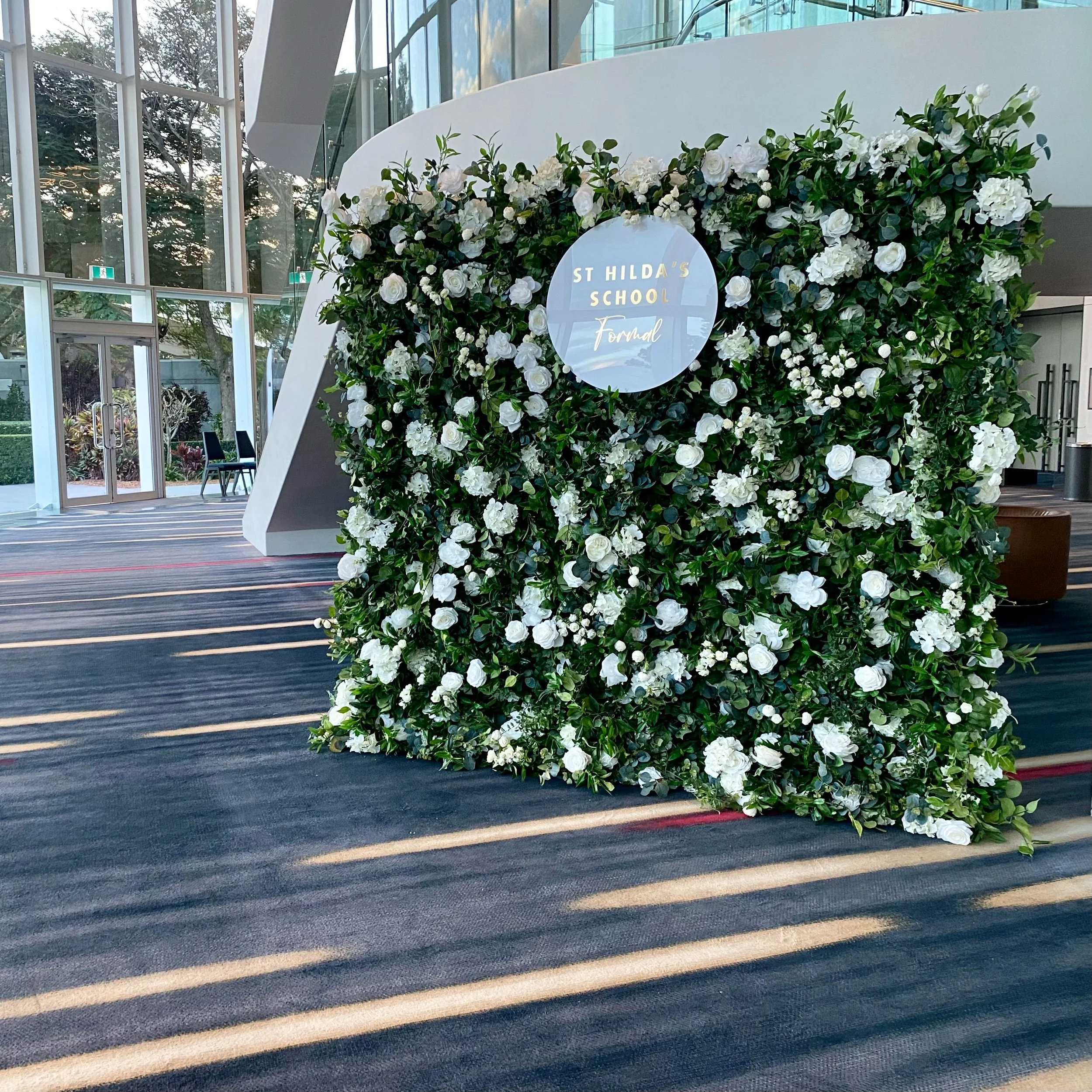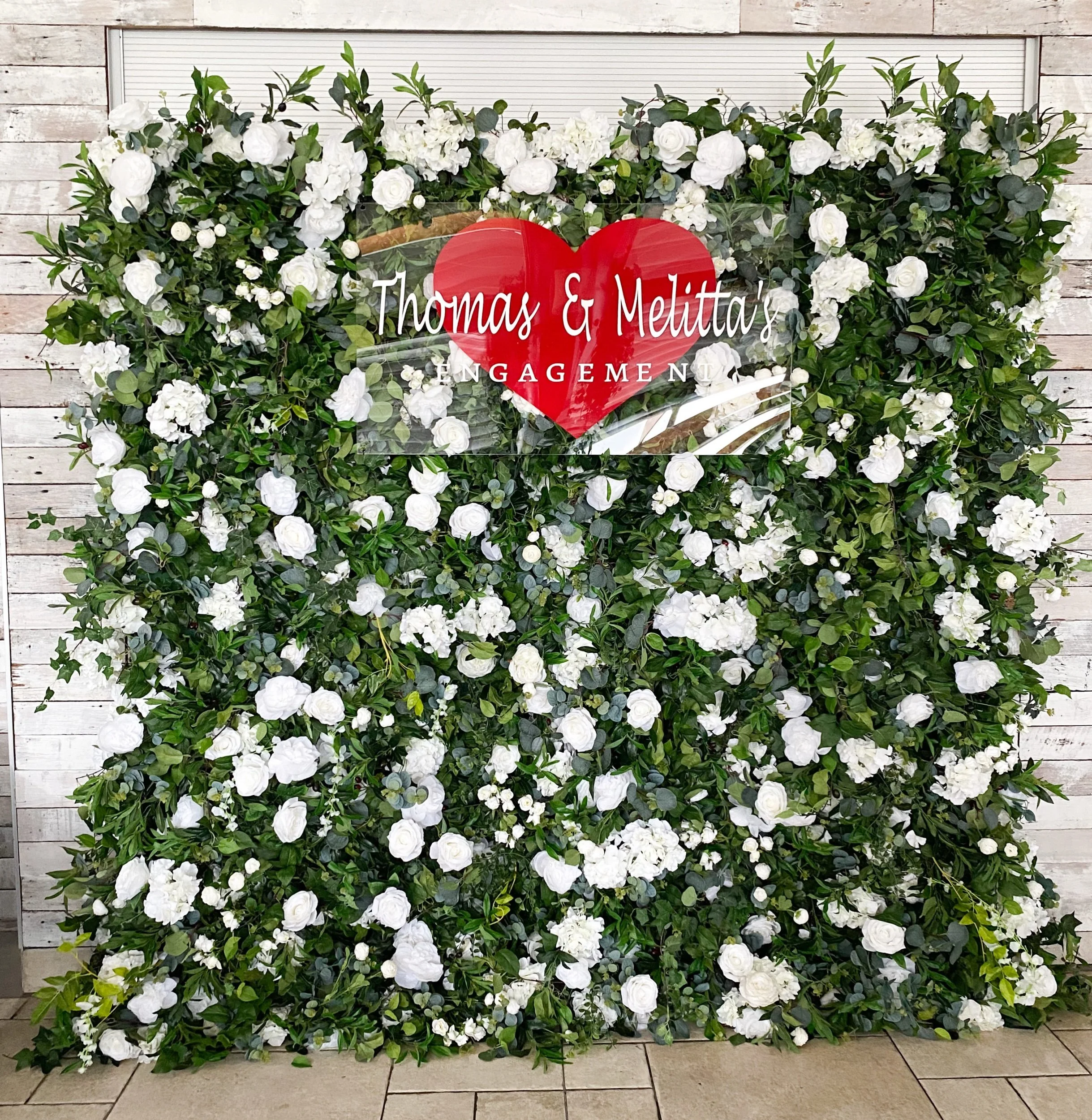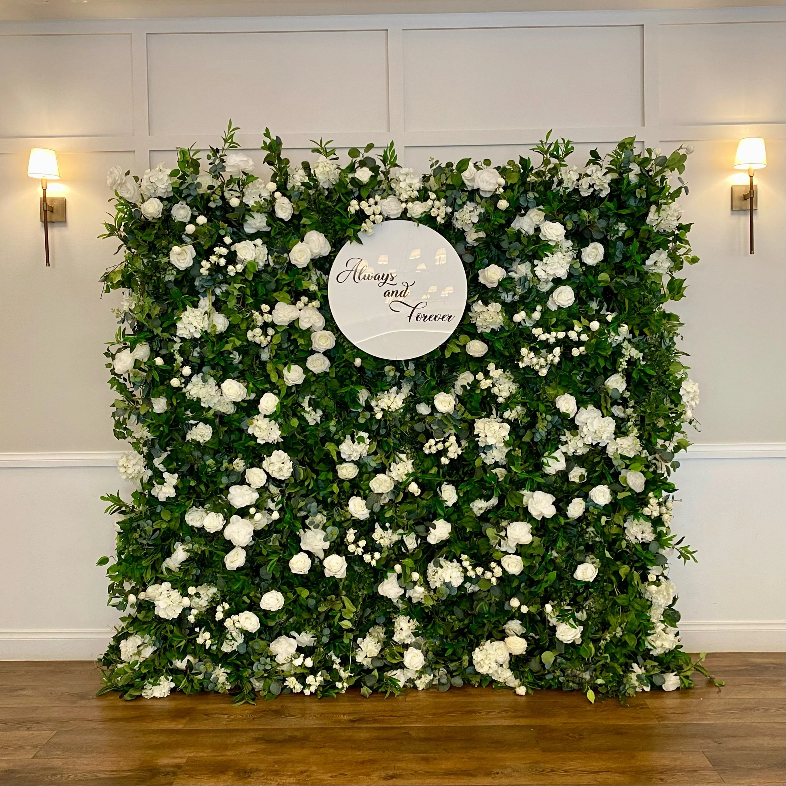The Royal Wall is high quality and embellished with layers of wild greenery to uncover hydrangeas and white roses.